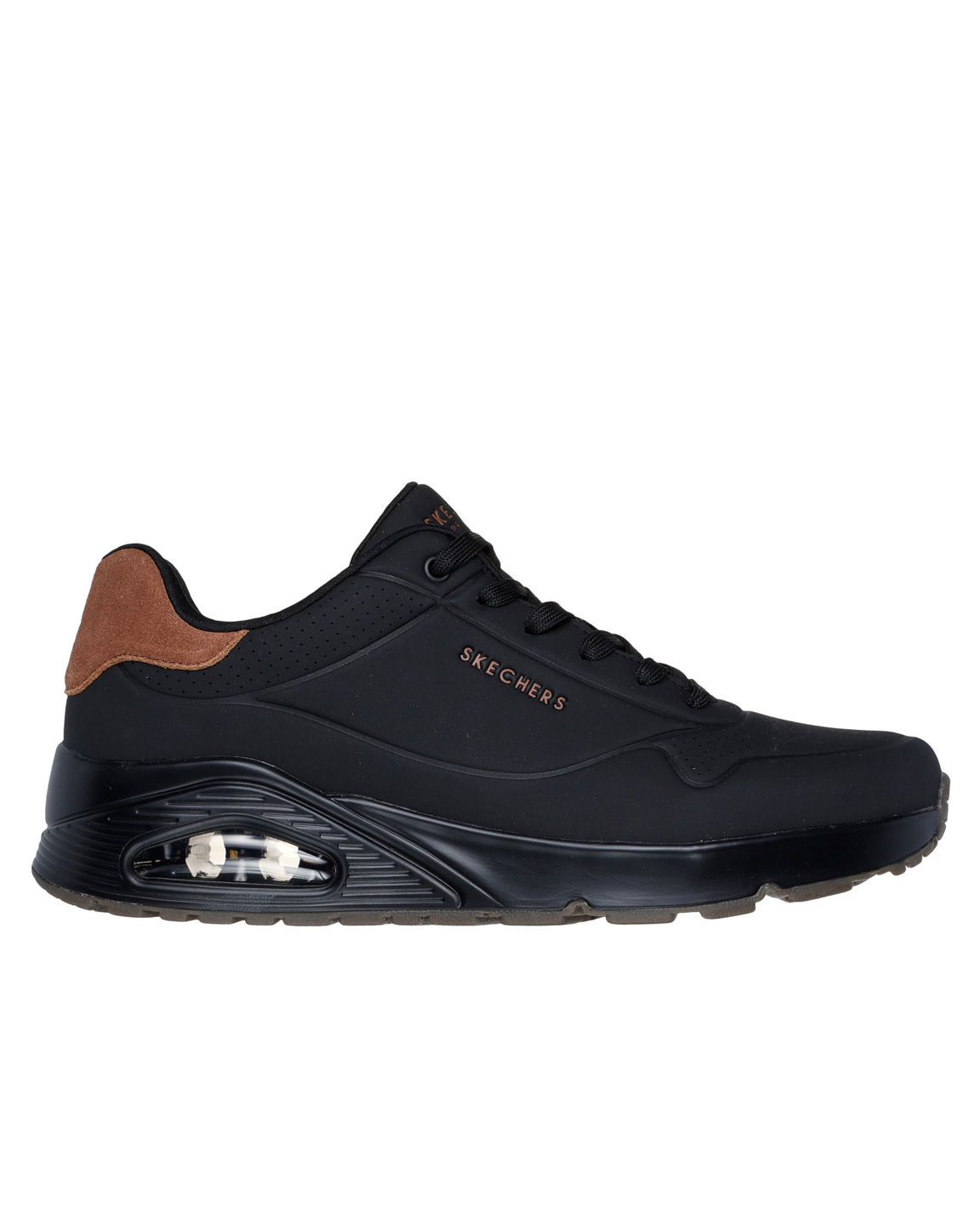 Skechers Street™ Uno - Suited On Air unisce comfort e uno stile sportivo raffinato. Questo modello da jogging classico allacciato presenta una tomaia in durabuck con dettagli impressi e una finitura in pelle scamosciata sul tallone, una soletta Skechers Air-Cooled Memory Foam® e un’intersuola ammortizzata ad aria con tecnologia visibile Skech-Air®.
