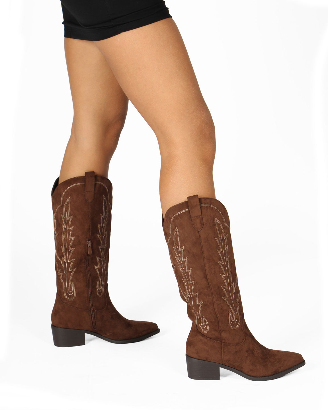 SOLEIL - Stivale texano marrone scamosciato con zip laterale, tacco 5CM