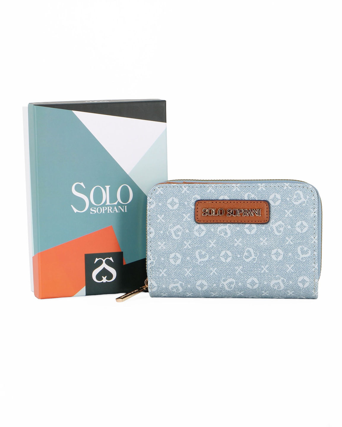 SOLO SOPRANI - Portafoglio jeans loggato con due scomparti principali