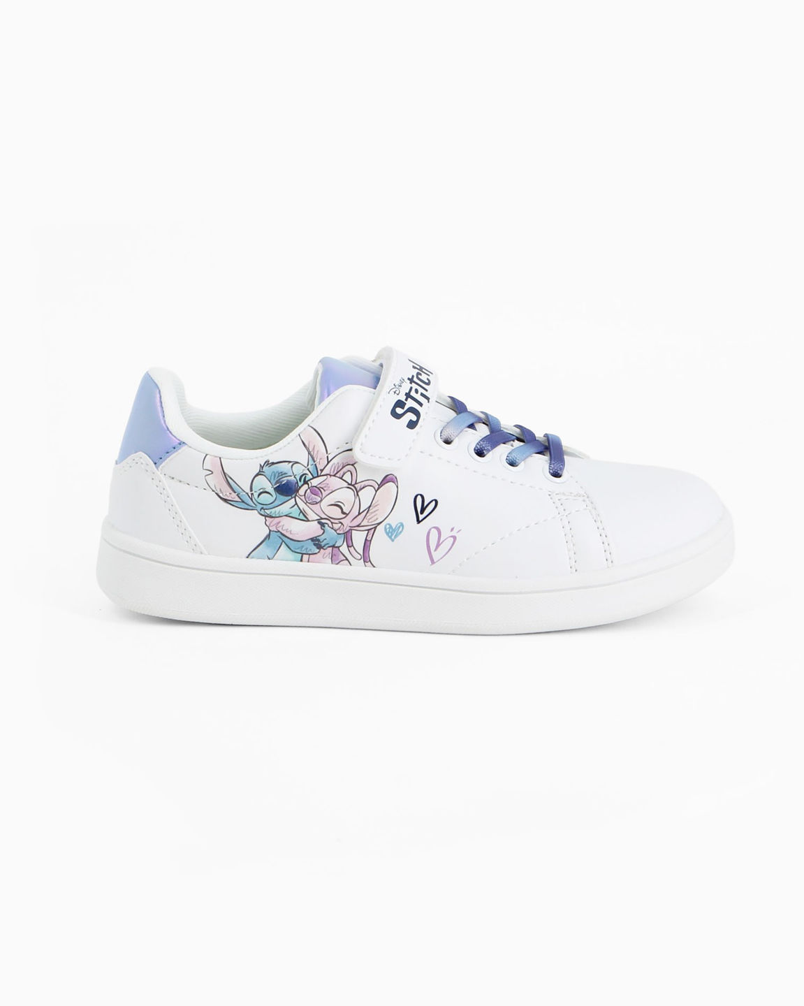 STITCH - Sneakers bianca da bambina con lacci e strappo