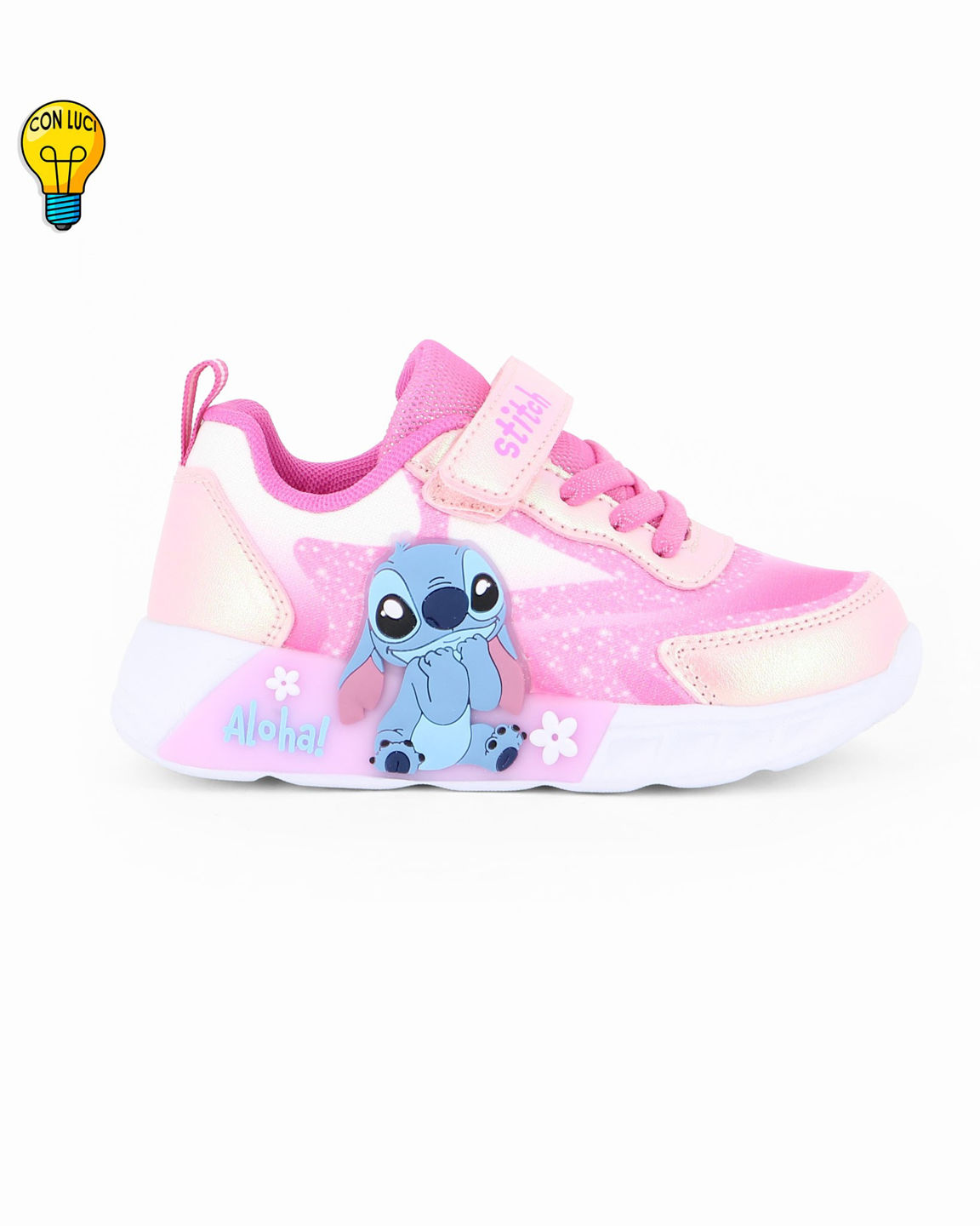 STITCH - Sneakers rosa da bambina con luci e strappo, numerata 25/31