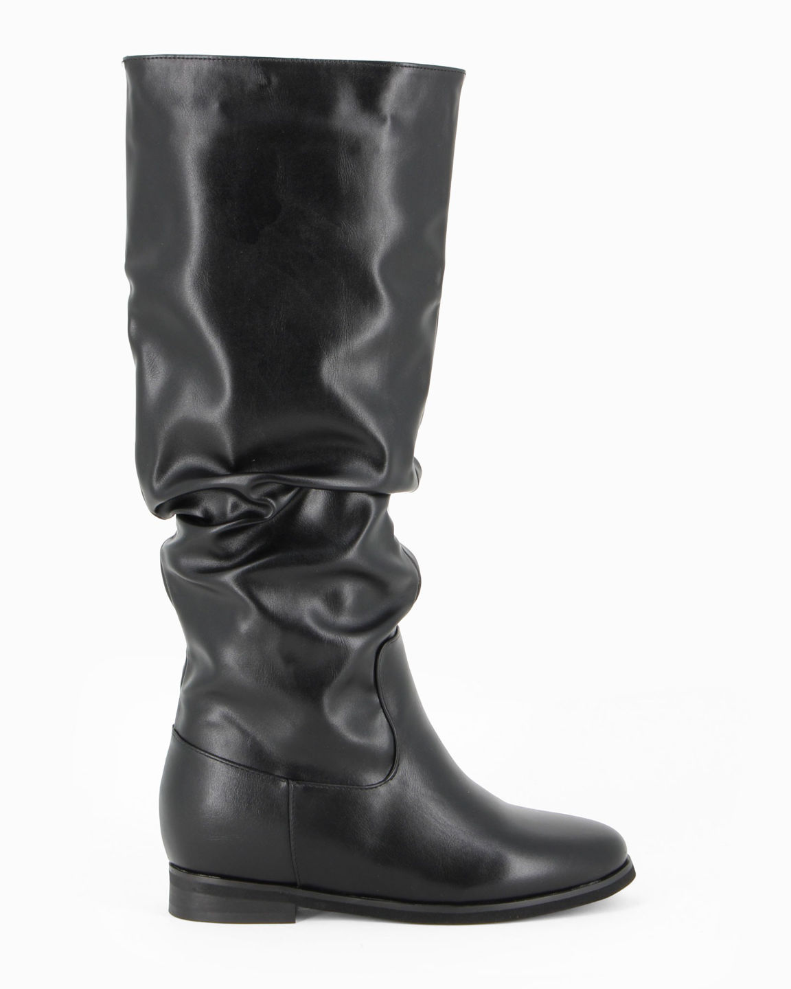 SUPER RIFLE - Stivale nero con gambale arricciato e zeppa interna di 9CM