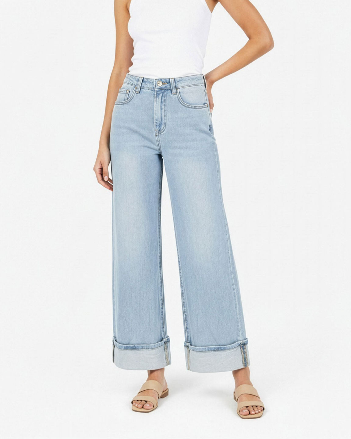 TATOO - JEANS CHIARO DA DONNA CON RISVOLTO