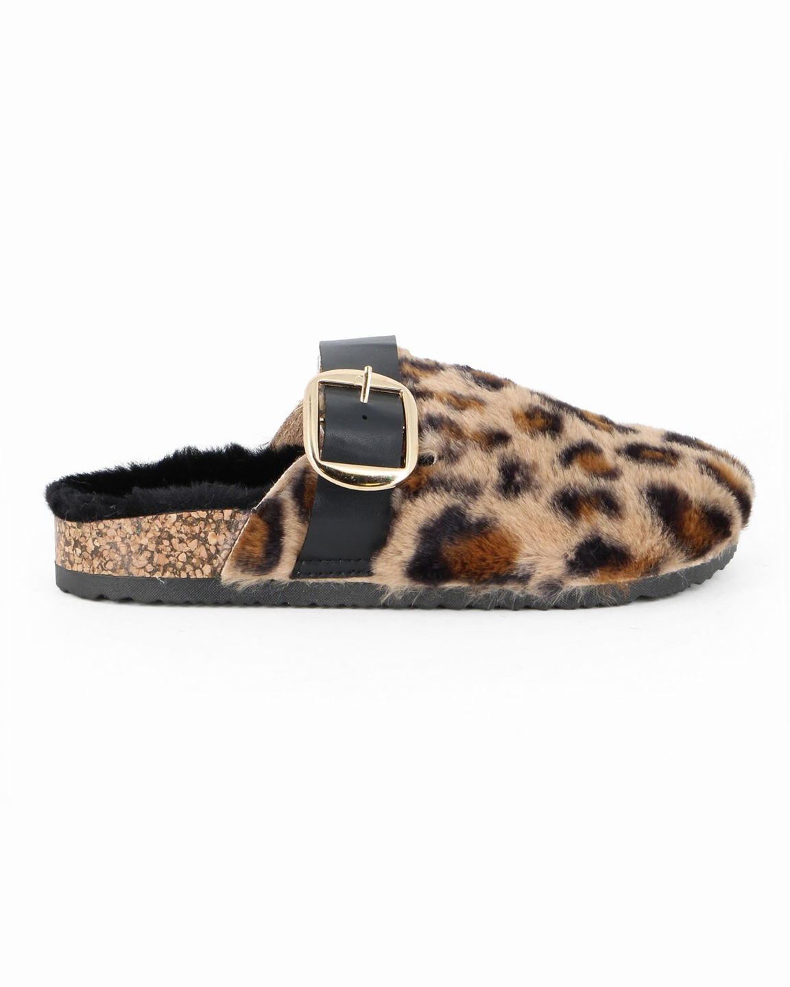 TATOO - Sabot leopardato con pelliccia e cinturino con fibbia