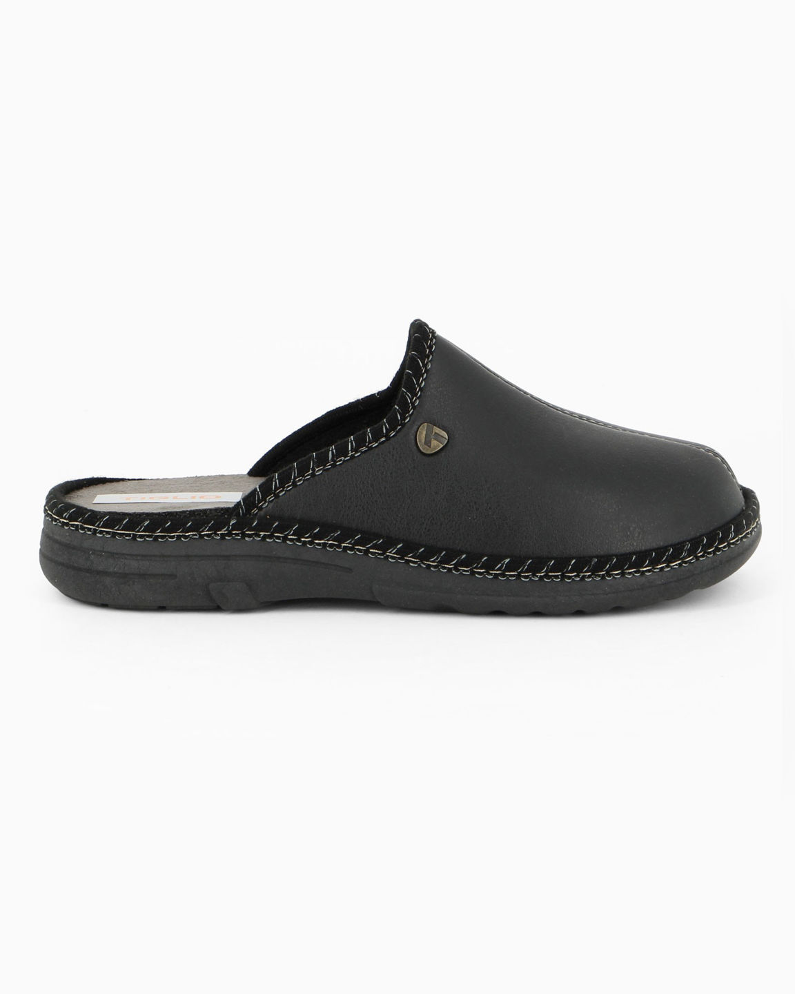 TIGLIO - Pantofola nera da uomo con cuciture a contrasto