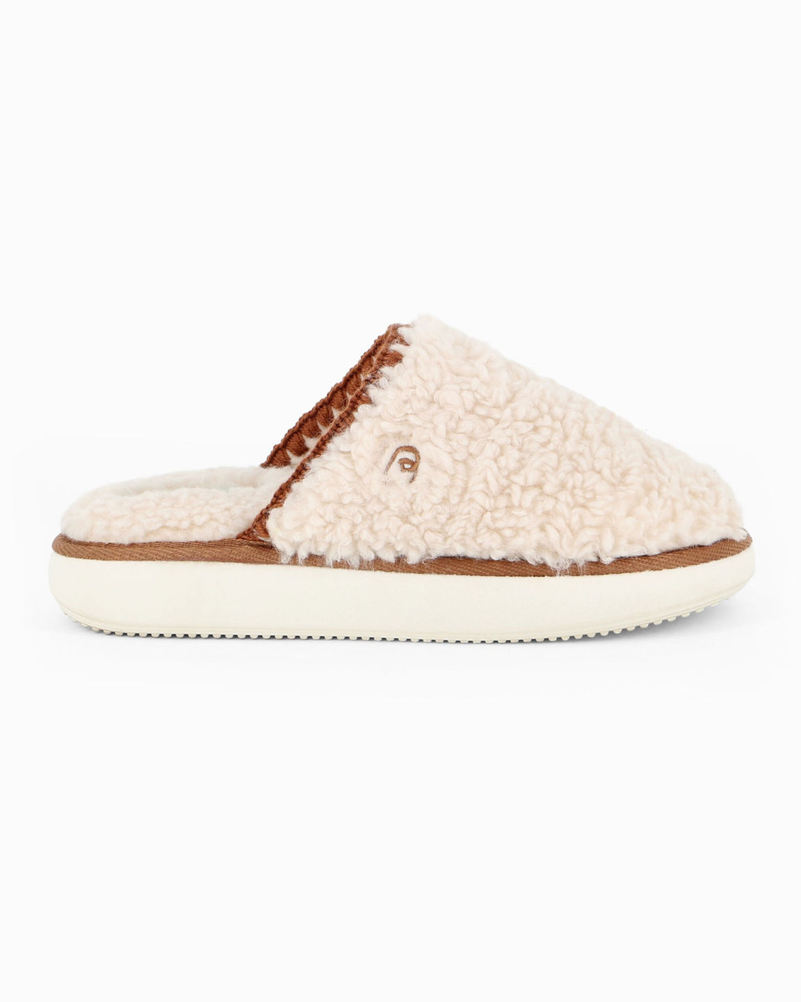 Calde e accoglienti, queste pantofole avvolgono il piede con la morbidezza della tomaia in eco-lana bouclè. Il sottopiede imbottito e la fodera interna garantiscono comfort e relax, mentre la suola flatform leggera e flessibile assicura stabilità in casa. La scelta ideale per i tuoi momenti di riposo quotidiano