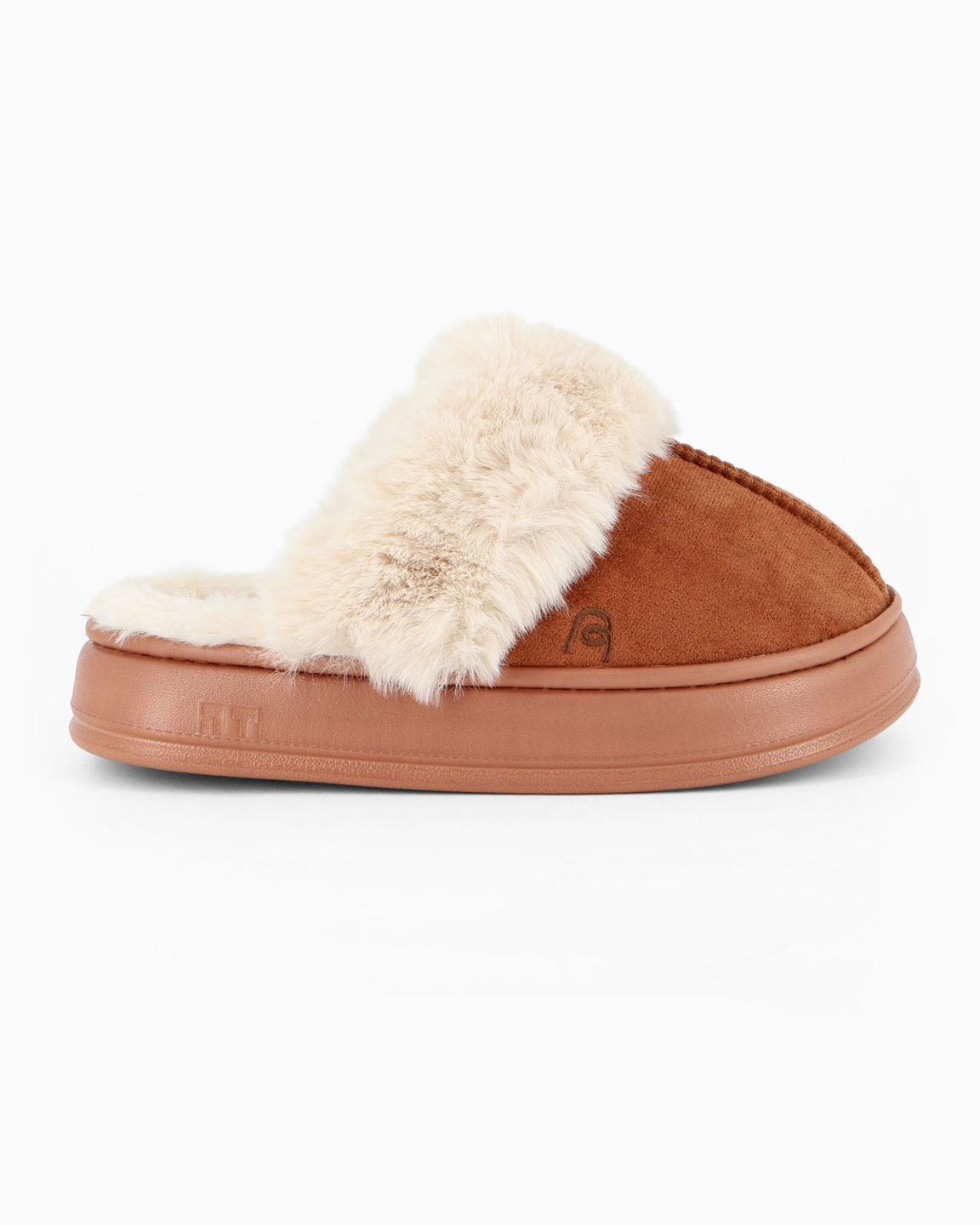 Una pantofola pensata per il relax quotidiano: soffice, pratica e accogliente. La cucitura centrale e il bordo in eco-pelliccia le donano un tocco distintivo, mentre la morbida fodera avvolge il piede con leggerezza. La suola rialzata e antiscivolo assicura stabilità in ogni passo dentro casa. Scegli di sentirti sempre sicura
