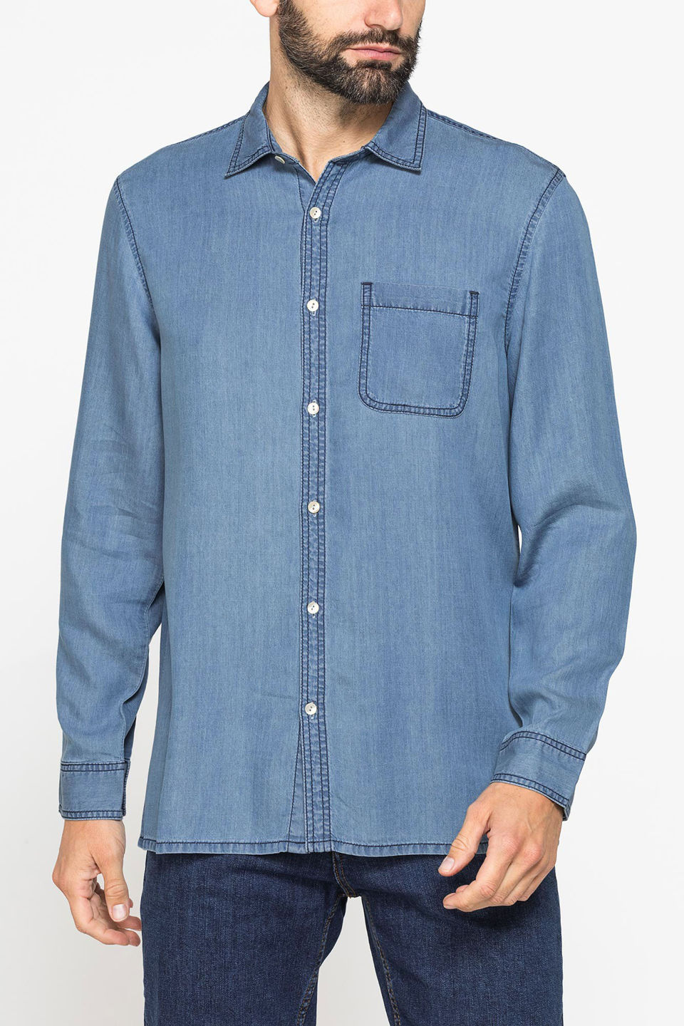 UOMO CAMICIA JEANS MANICA LUNGA