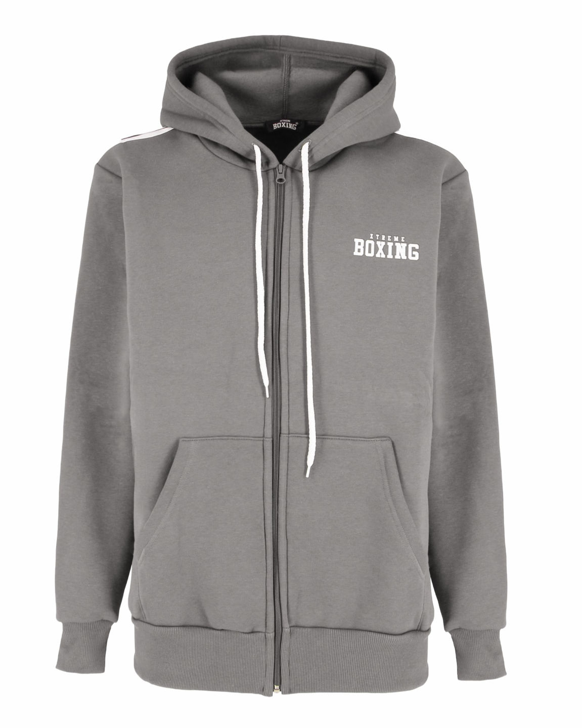 XTREME BOXING - FELPA GRIGIA DA UOMO FULL ZIP CON CAPPUCCIO