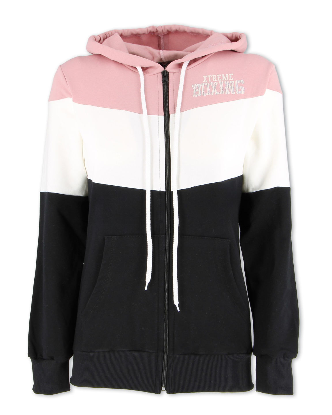 XTREME BOXING - FELPA ROSA/BIANCA/NERO DA DONNA FULL ZIP CON CAPPUCCIO