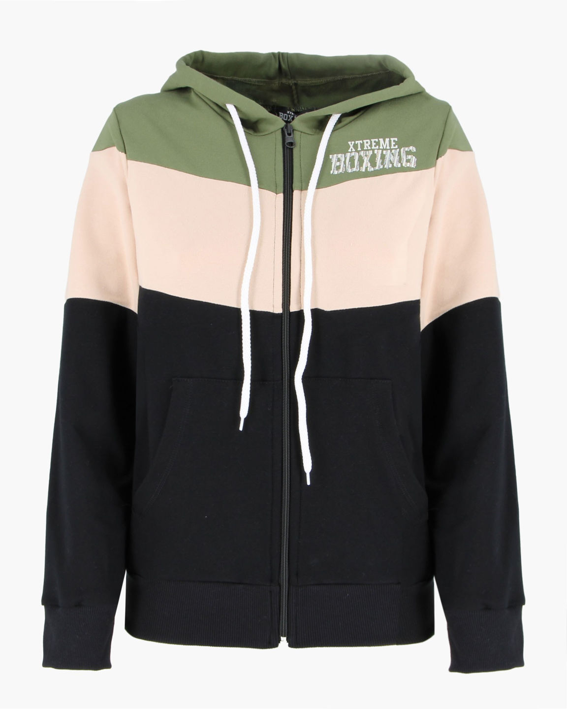 XTREME BOXING - FELPA VERDE/BEIGE/NERO DA DONNA FULL ZIP CON CAPPUCCIO