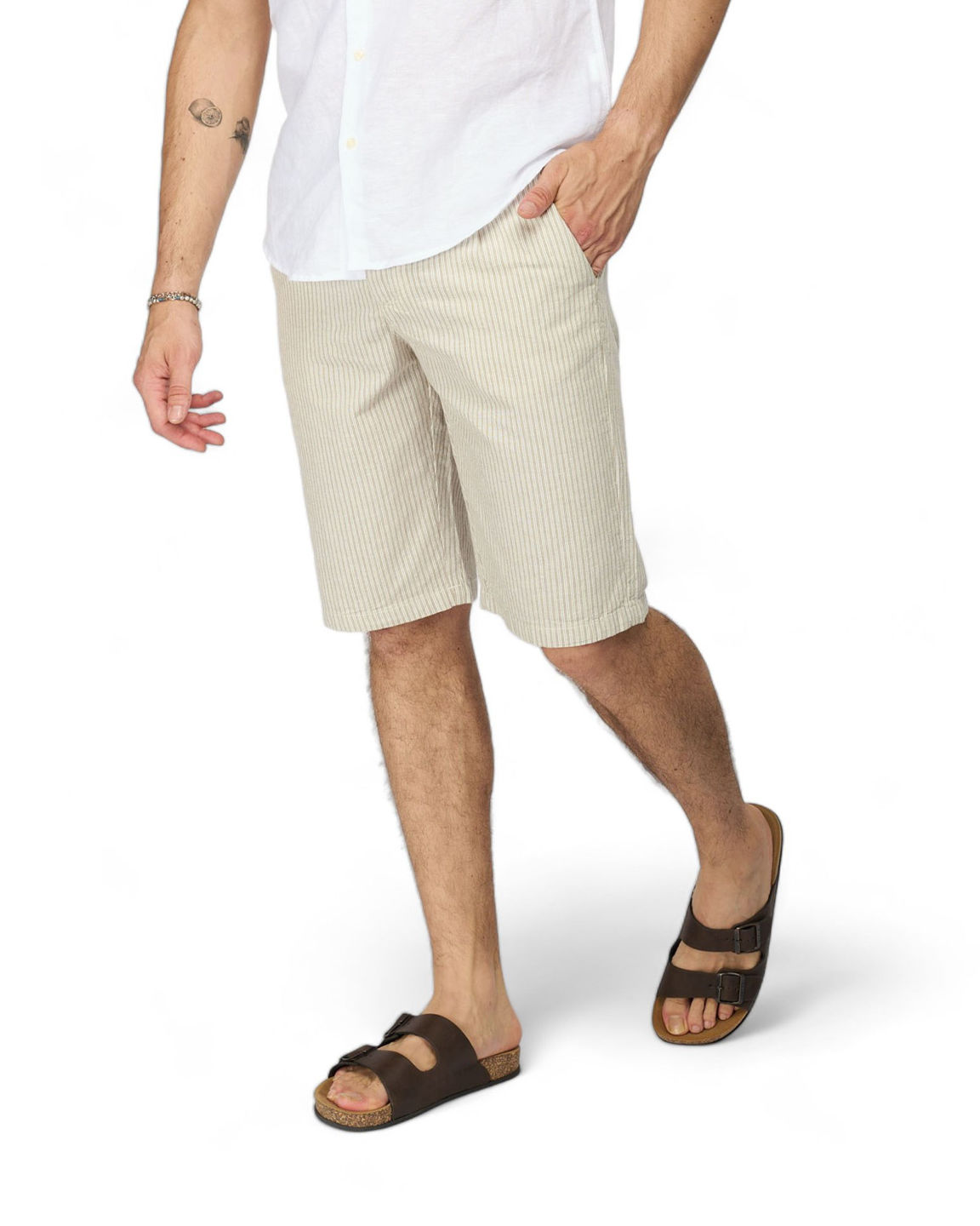 YELLOW DOG - BERMUDA DA UOMO BEIGE TASCA AMERICA A RIGHE CON LACCIO