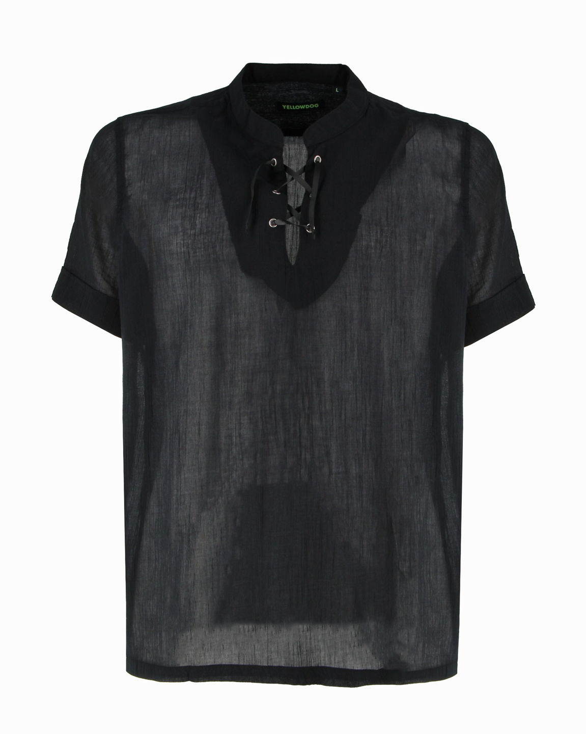 YELLOW DOG - CAMICIA MEZZA MANICA NERA, SCOLLO A V E LACCI FROTALI
