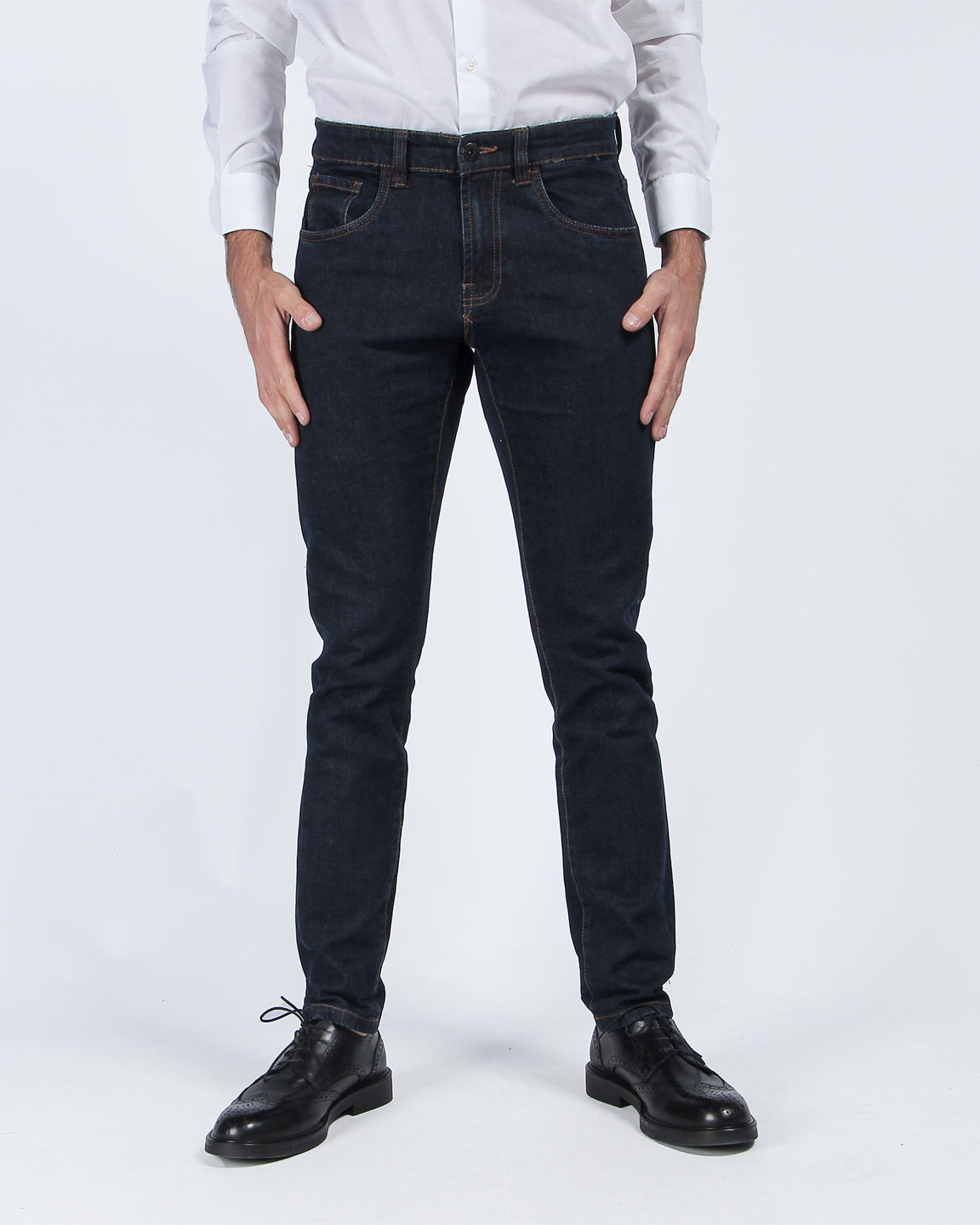 DETTAGLIO:PANTALONE UOMO SLIM. 5TASCHE CON CHIUSURA A ZIP CON BOTTONE. IL MODELLO INDOSSA LA TAGLIA 46