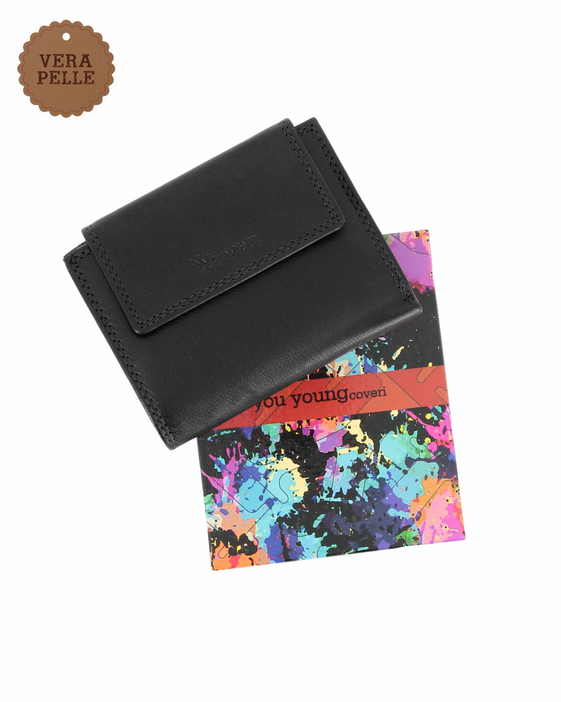YOU YOUNG COVERI - Portafoglio nero in VERA PELLE con patta e ribaltina