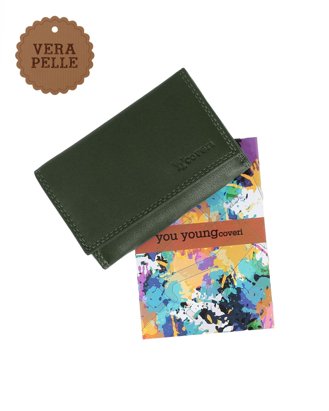 YOU YOUNG COVERI - Portafoglio verde in VERA PELLE con patta e tasca portamonete