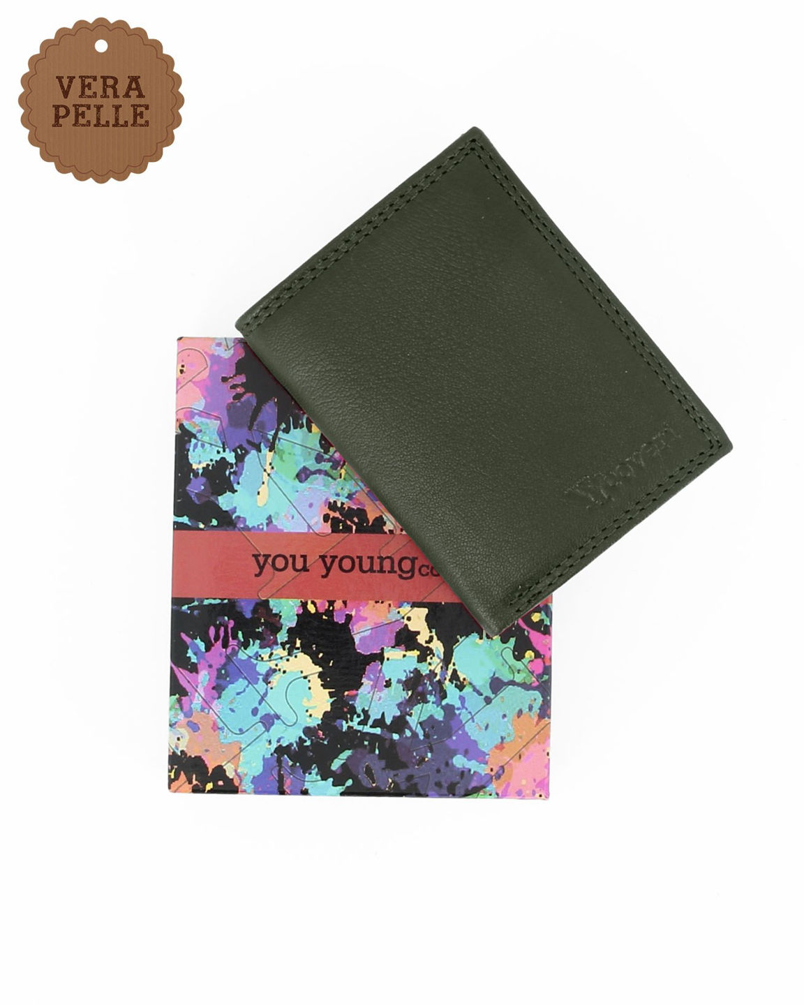 YOU YOUNG COVERI - Portafoglio oliva in VERA PELLE da donna