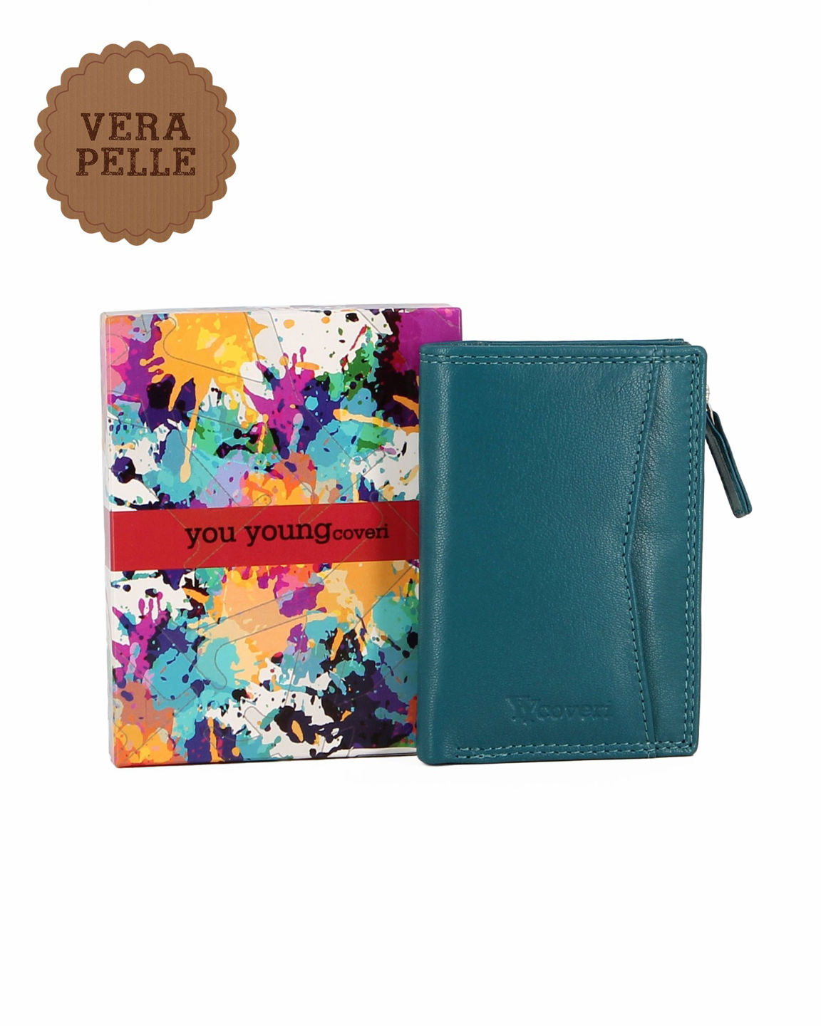 YOU YOUNG COVERI - Portafoglio ottanio in VERA PELLE da donna con tasca frontale