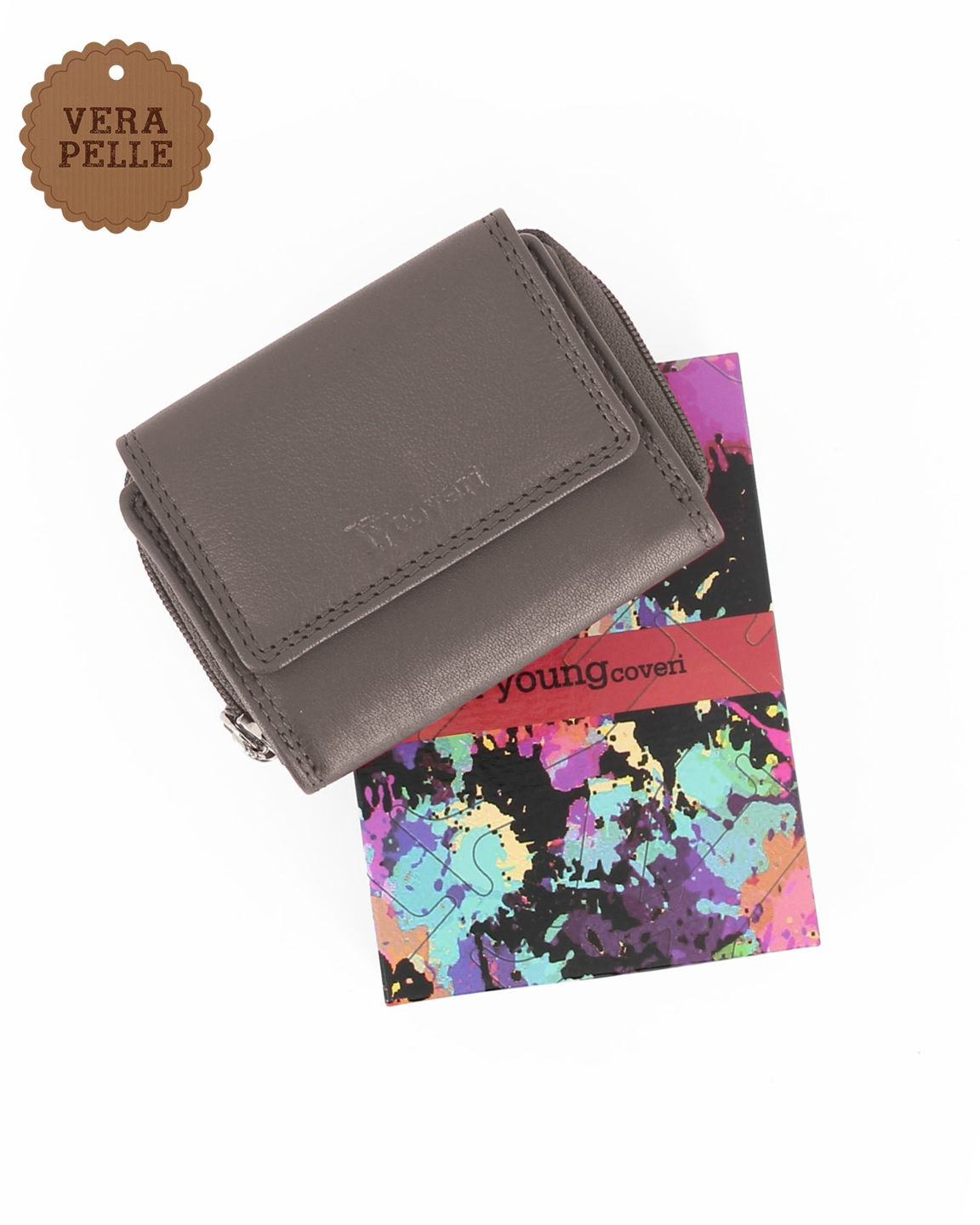 YOU YOUNG COVERI - Portafoglio piccolo grigio in VERA PELLE con pattina e tasca portamonete