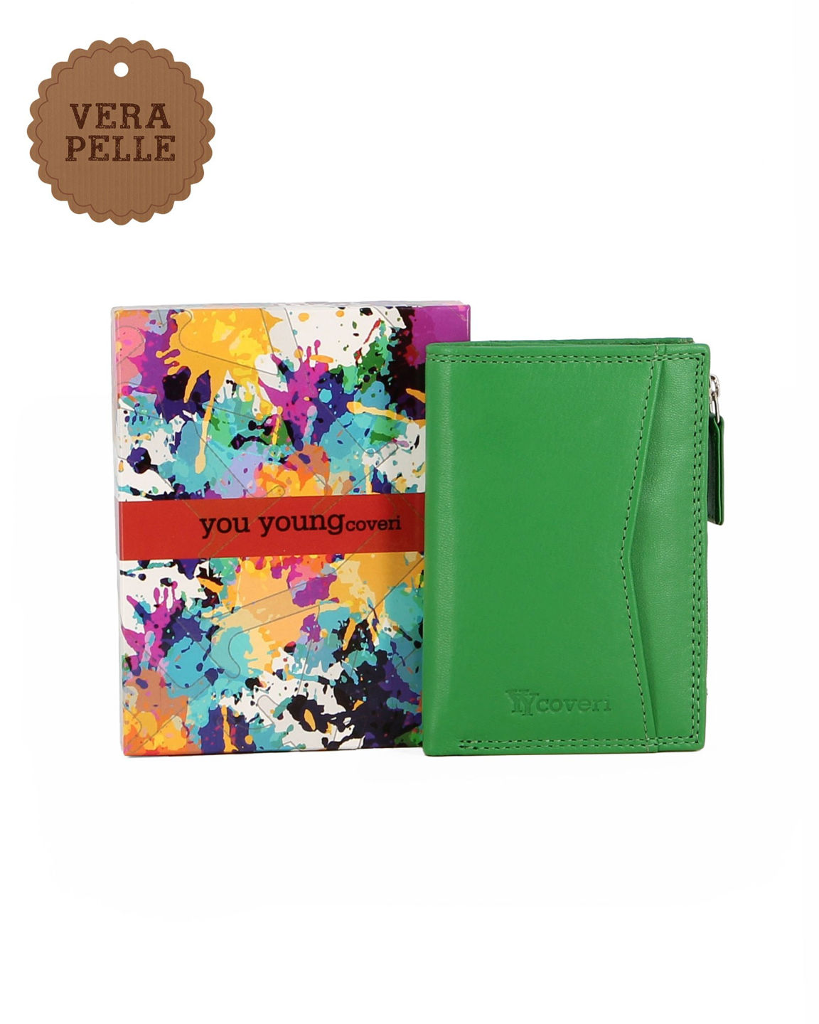 YOU YOUNG COVERI - Portafoglio verde in VERA PELLE da donna con tasca frontale