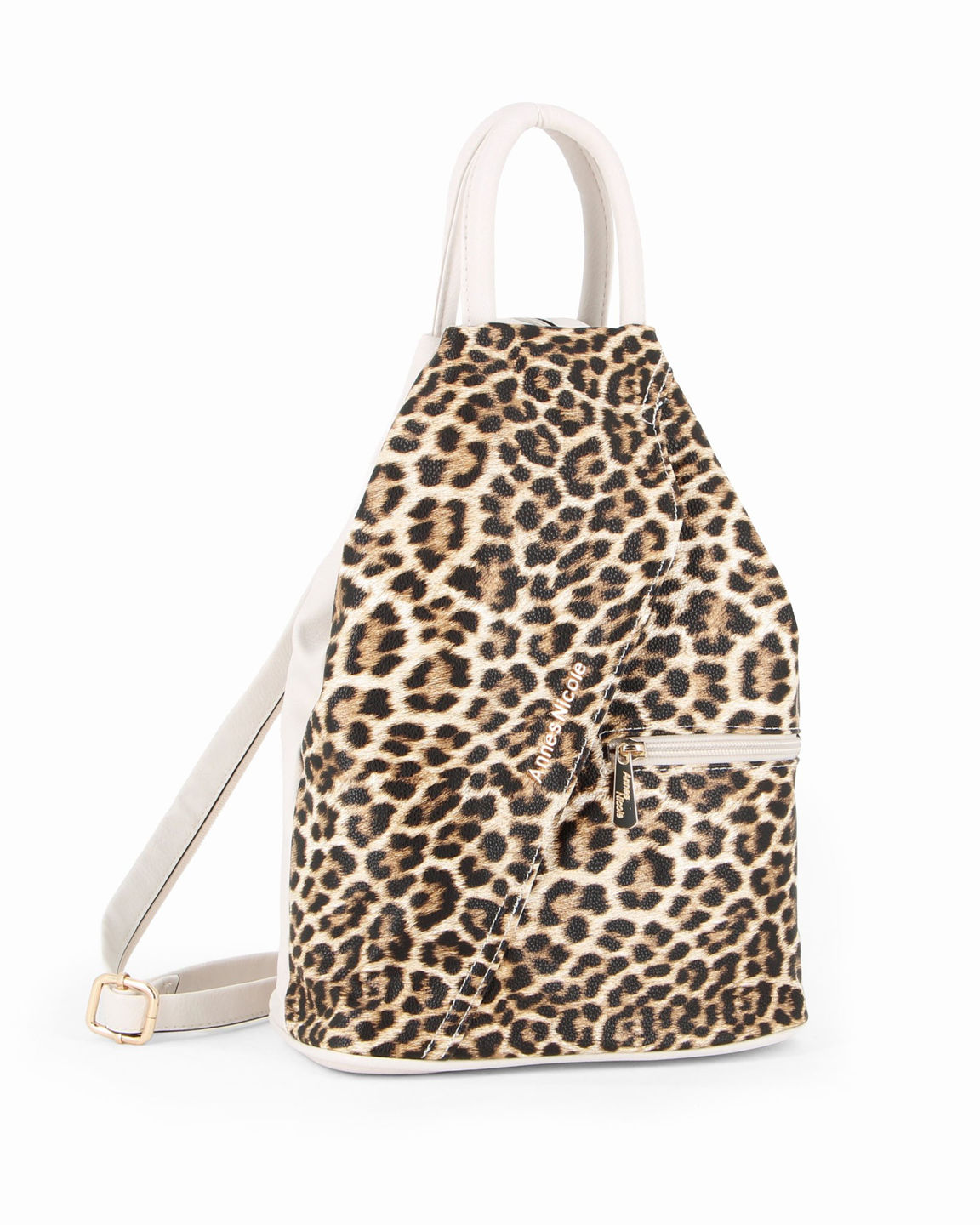 ANNES NICOLE - Zaino beige due manici con doppia tasca frontale e spalline regolabili con zip