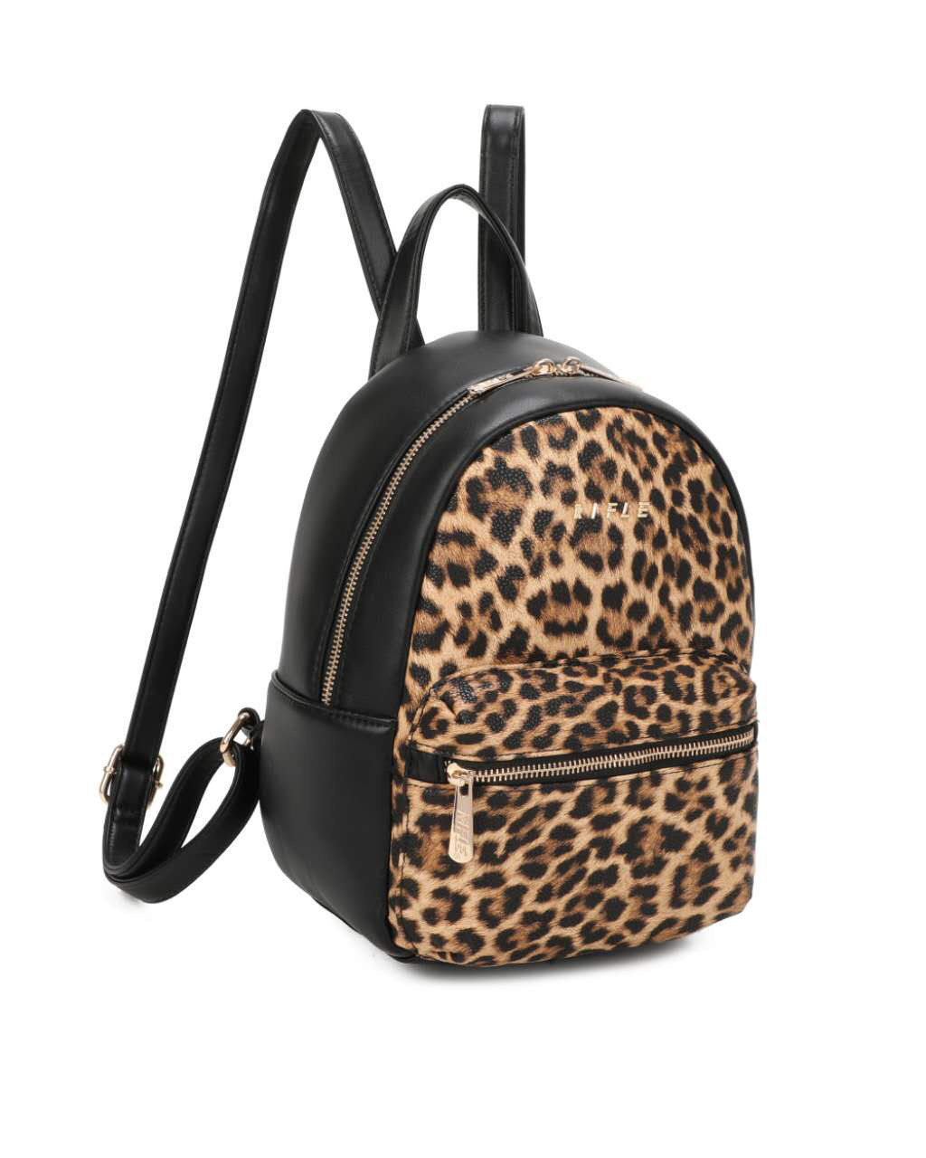 RIFLE - Borsa a mano leopardata con manico intrecciato e tre scomparti principali, tracolla removibile
